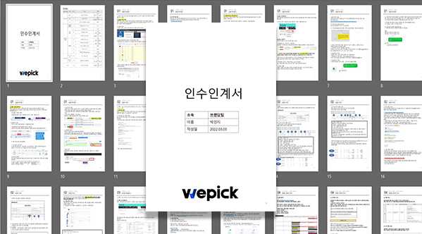 출처: 위픽 코퍼레이션 인수인계서, 인수인계서가 자세할수록 신입이 모르는 부분을 찾아 볼 수 있음.