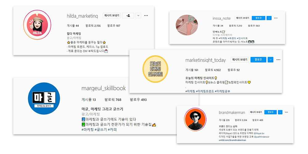 출처: 인사이트 공유 인스타그램 계정 ‘마글’, ‘인싸노트’, ‘브랜드 만드는 남자’, ‘오늘의 마케팅 인사이트’