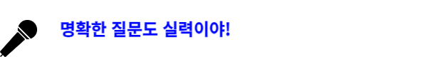 했던 말을 반복하게 만들더라도 모르는 것은 명확하게 질문하세요! ‘이건 어떻게 해요?’, ‘저건 어떻게 해요’ 정답을 구하는 식의 질문은 삼가고, 본인의 생각을 한번 정리해서 질문하세요!