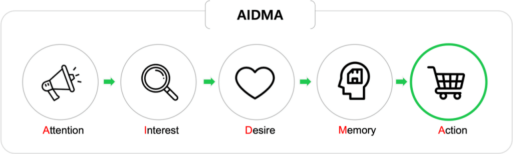 이 당시의 고객 여정으로 주로 사용되던 AIDMA에서 마지막의 ‘Action’ 즉 ‘구매’는 모든 마케팅과 브랜딩 활동을 열심히 하다 보면 받게 되는 복권 같은 거였습니다. 인력으로 할 수 있는 건 Action의 전 단계까지, 즉 상품이 진열된 매대 앞에 설 때까지 잊어비리지 않게 만드는 것(Memory)까지인 셈이죠. 그 뒤는 진인사대천명 같은 겁니다.