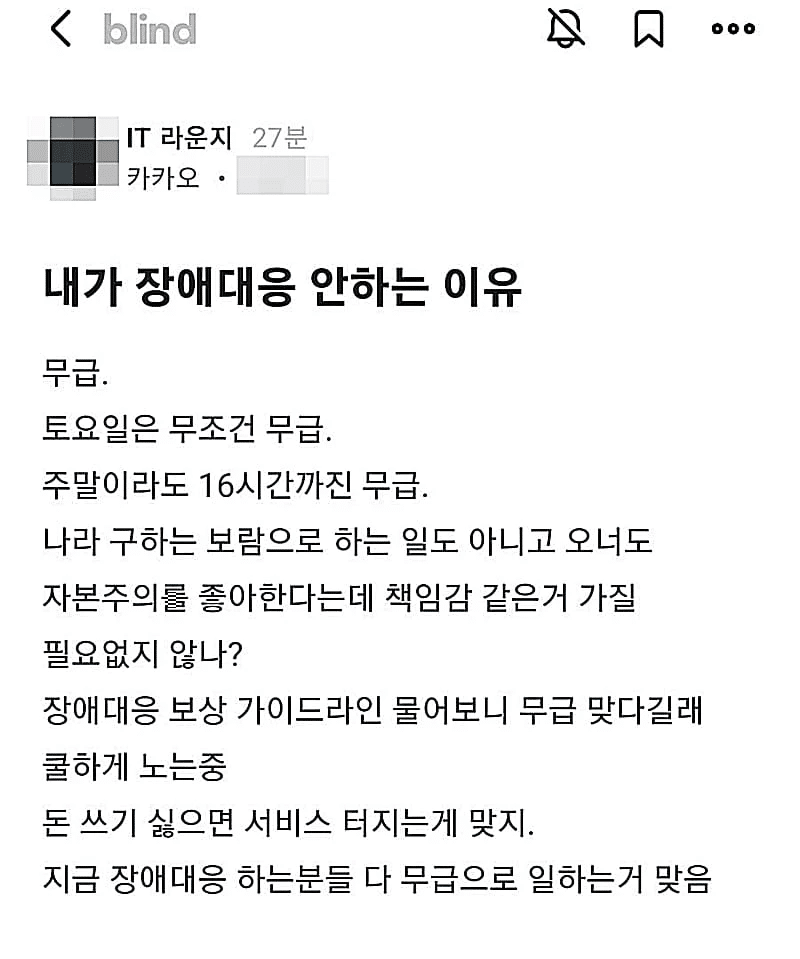 최근 SK C&C 판교 데이터센터 화재 여파로 카카오 서비스가 먹통이 되는 사건이 있었죠! 당시 직장인 익명 커뮤니티 앱 ‘블라인드’에 올라온 글이 논란이 되어 무책임하다는 의견과 현명한 태도라는 의견이 대립하였습니다.
