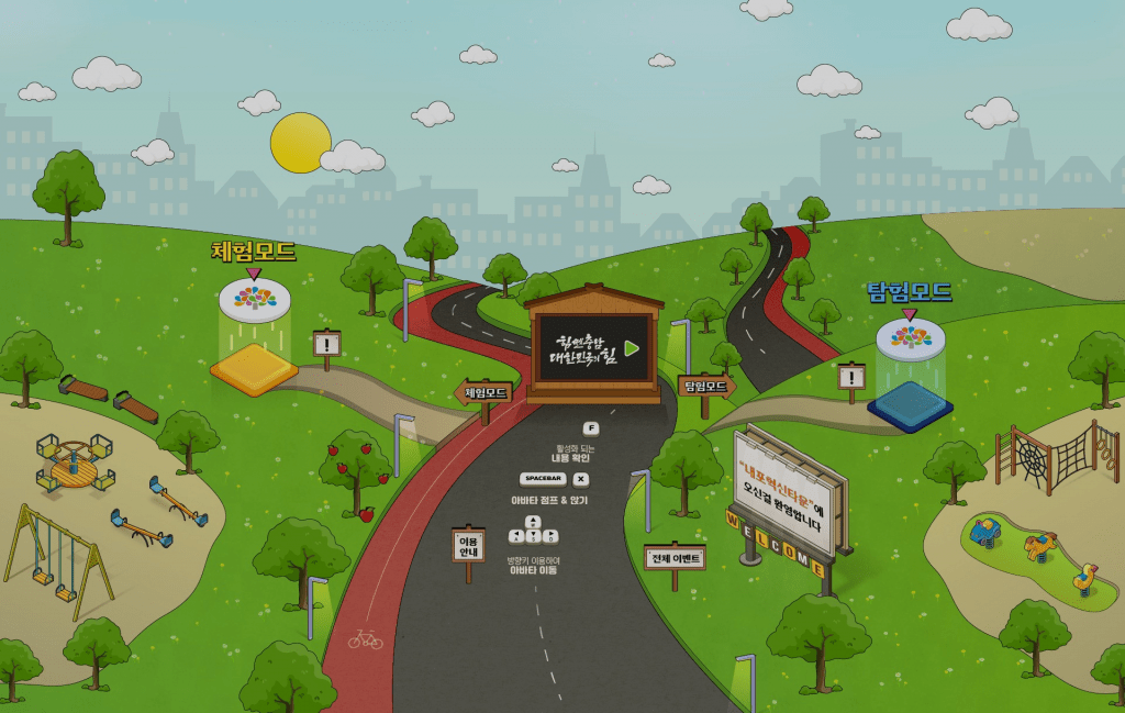 충남은 ‘ZEP’을 통해서 내포신도시를 메타버스로 구현한 가상 공간 ‘내포혁신타운’을 구축했는데요. 타 지역에 살더라도 별도의 회원가입 없이 귀여운 아바타로 내포신도시를 방문하고 체험 할 수 있습니다.
