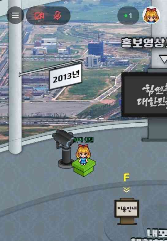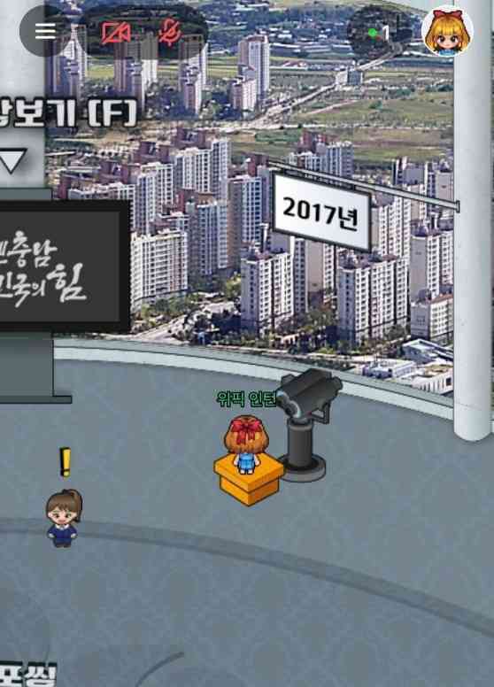 다음은 내포혁신타운의 전망대 모습인데요. 캐릭터가 망원경에 올라서면 시대 별로 각각 다른 화면이 펼쳐집니다. 에디터가 직접 체험해보니 생생하고 신기해서 앱을 종료한 후에도 기억에 남아 이 기능을 적극 활용하길 추천드립니다!