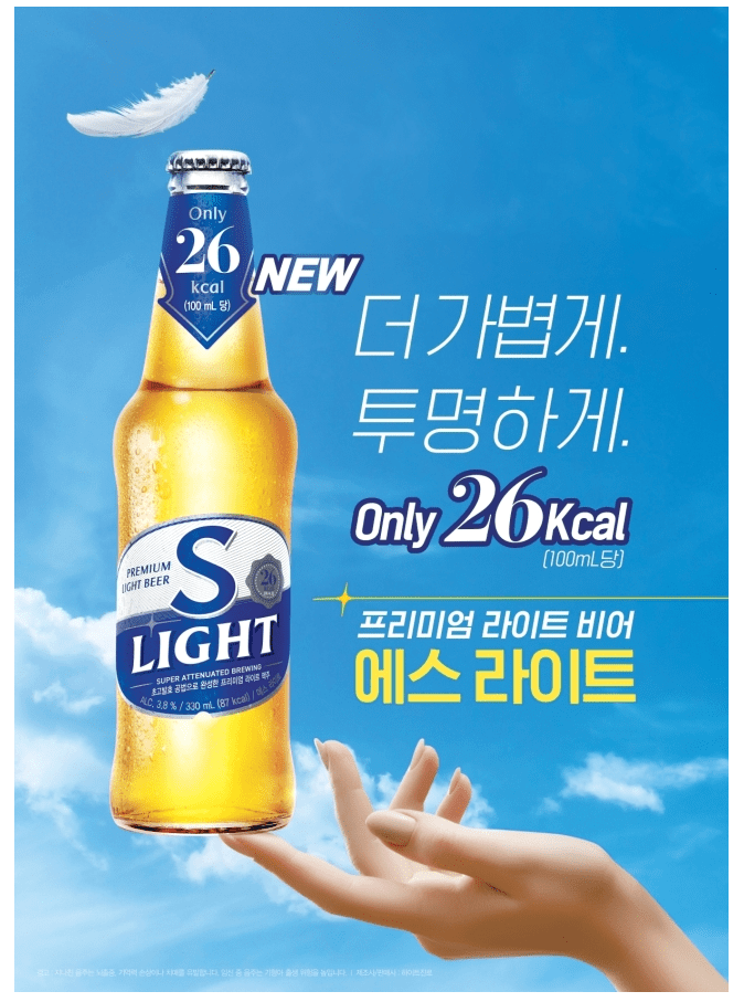 하이트진로 역시 같은 행보를 보이고 있다. 하이트진로는 최근 2007년 출시한 국내 최초 식이섬유 함유 맥주 ‘에스’ 의 칼로리를 낮추고, 투명병을 적용해 ‘에스 라이트'(S-LIGHT)로 전면 리뉴얼을 진행했다.