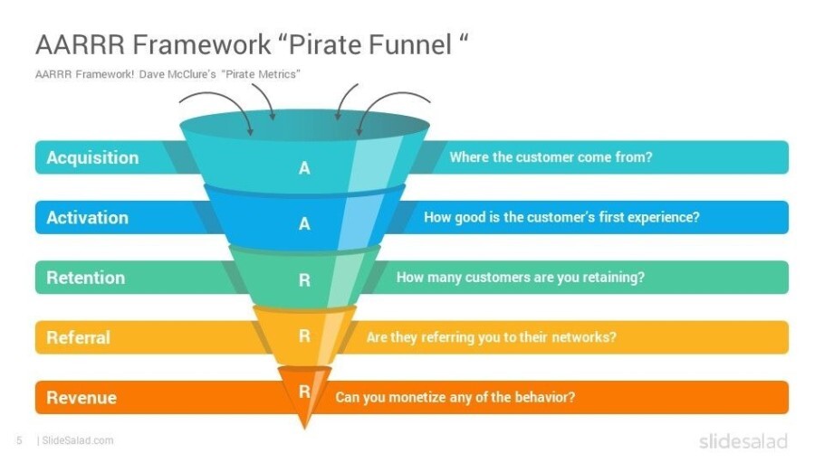 AARRR은 다음의 5개 단계의 앞글자를 따서 명명되었다.