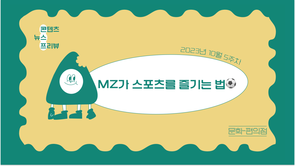 요즘 주말에 뭐했냐고 주변에 물어보면 야구를 보고 왔다는 대답이 꽤 많습니다. 여러분도 즐겨보고, 챙겨보고, 더 나아가 덕질하는 스포츠가 있으신가요? MZ세대들은 어떻게 스포츠를 즐기고 있는지 살펴봅시다.