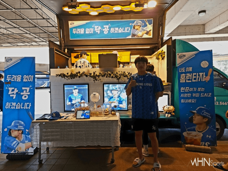 생일 커피차를 받은 삼성 라이온즈 김현준 선수(출처=팬카페, MHN스포츠)
