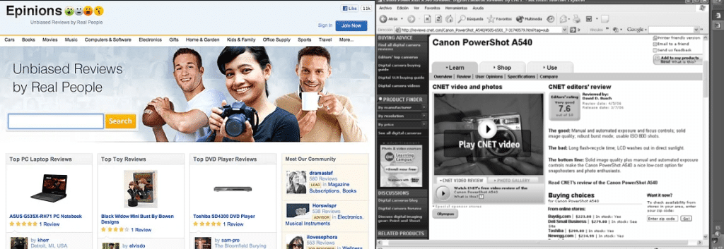 *온라인 쇼핑몰이 아닌 온라인 리뷰를 전문으로 했던 대표적인 사이트로는 Epinions.com, CNet.com 등이 있었다.