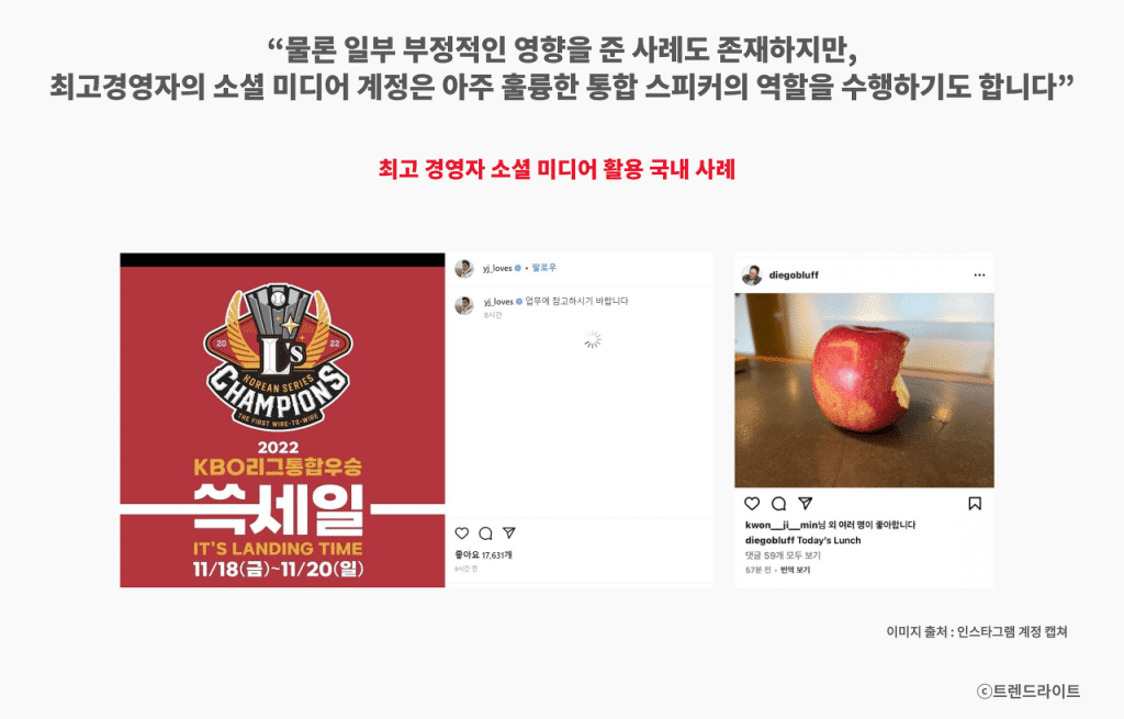 꼭 CEO가 SNS 활동을 활발히 하진 않더라도, 통합 스피커 역할을 할 무언가는 꼭 필요합니다