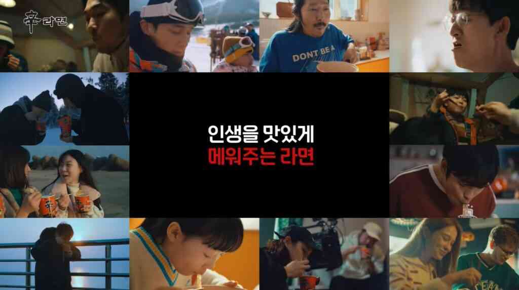 수많은 사람들이 신라면을 먹는 장면을 나열하며 신라면이 우리 인생 곳곳에 스며든 모습을 보여줍니다.