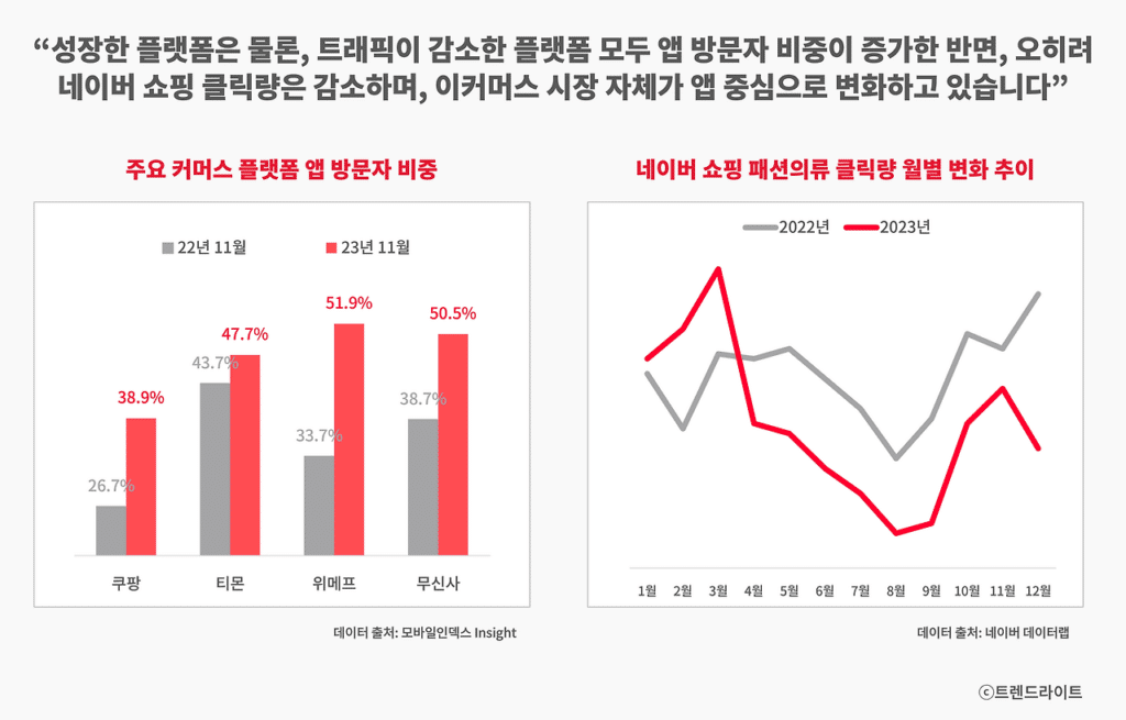 이제 고객들은 온라인 쇼핑 시 네이버에서 검색하기보다는 선호하는 쇼핑몰 앱에 바로 접속하고 있습니다