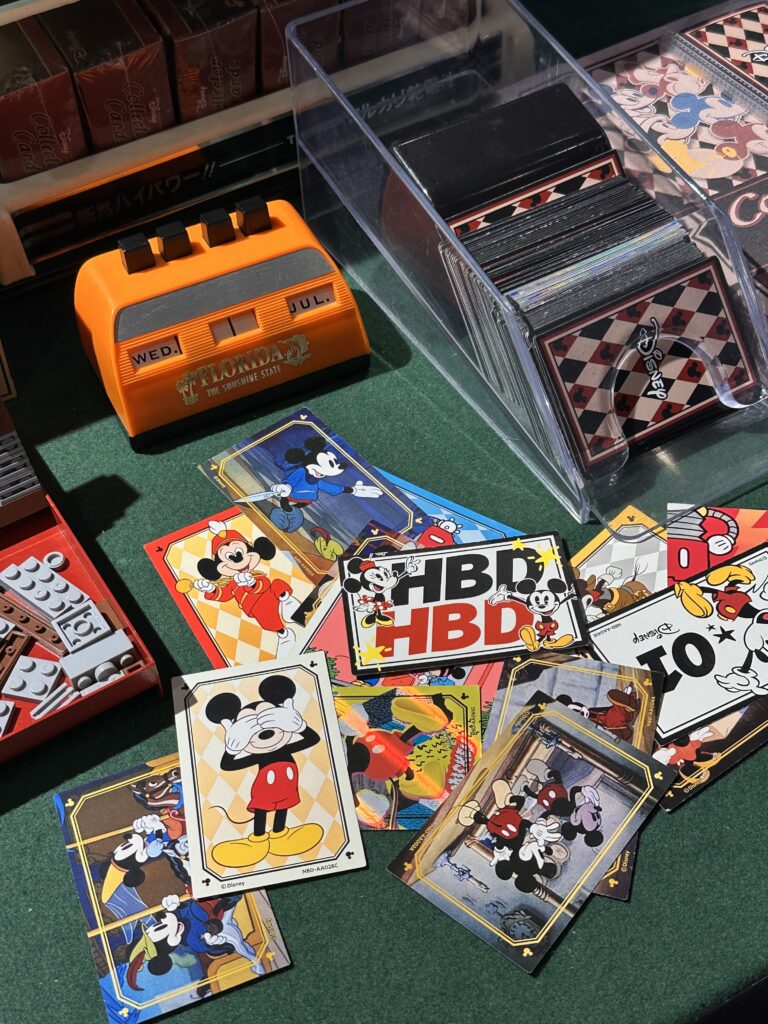 귀여운 디즈니 굿즈와 캔들, 램프 등 다양한 아이템들이 전시되어 있어,
