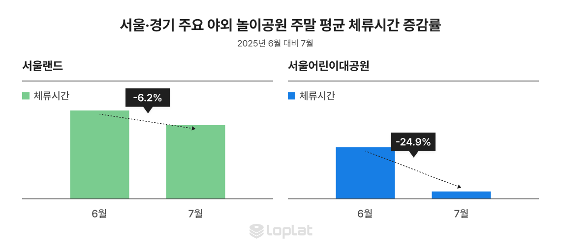 여기에는 에버랜드는 워터파크(캐리비안 베이) 조기 오픈, 야간 물놀이 공연(워터 디제잉) 등 폭염 대응 콘텐츠를 강화해 방문 유지에 긍정적인 영향을 미쳤을 가능성이 있습니다. 서울어린이대공원과 서울랜드도 물놀이 이벤트를 운영했으나, 기간이 짧고 운영 시간대가 제한적이었으며, 규모 면에서도 에버랜드와 차이가 있었던 것으로 보입니다.