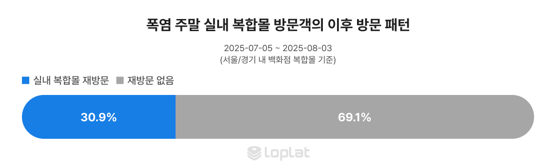 폭염은 사람들의 이동을 실내로 이끌었지만, 구체적인 방문 패턴은 실내 복합몰의 주변 환경과 입지 조건에 따라 달라졌습니다.