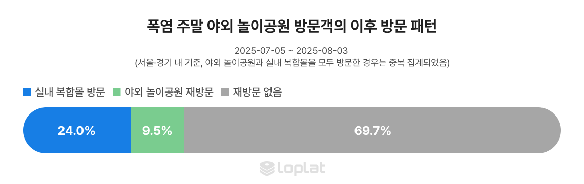 분석 결과, 야외 놀이공원 방문자 중 일부는 다음 주말에 실내 복합몰로 이동하거나 야외 놀이공원을 재방문했지만, 다수는 두 공간 모두 찾지 않았습니다.