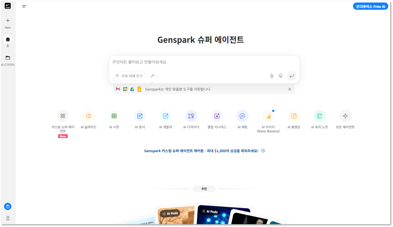 최근엔 Gamma 외에 다른 툴을 사용하는 경우도 많습니다. 우선 Genspark와 Claude가 있는데요. 방문을 하게 되면 아래와 같은 화면을 볼 수 있습니다.