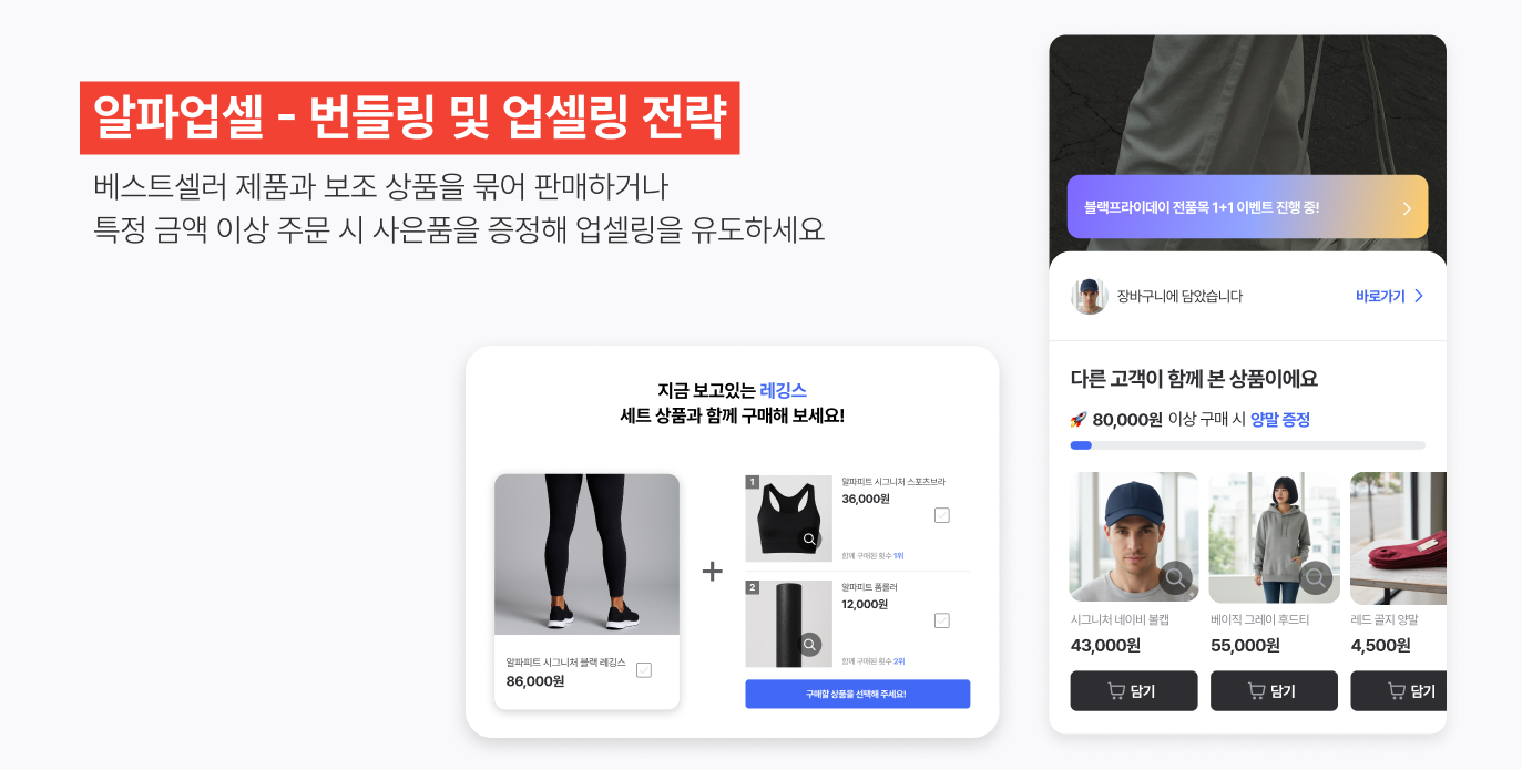 두 번째, 번들링 및 업셀링 전략으로 객단가를 극대화해 보세요. 베스트 제품과 마진이 높은 보조 상품을 묶어 기간 한정 세트를 구성해 묶음 판매 전략을 실행해 보세요. 또한, 고객이 장바구니에서 결제 단계에 도달했을 때 '3천 원 추가 시 프리미엄 세트 업그레이드' 혹은 '5만 원 이상 구매 시 한정판 사은품 증정'을 안내해 구매 여정 중 자연스럽게 추가 구매를 유도하는 업셀링 로직을 적용해야 합니다.