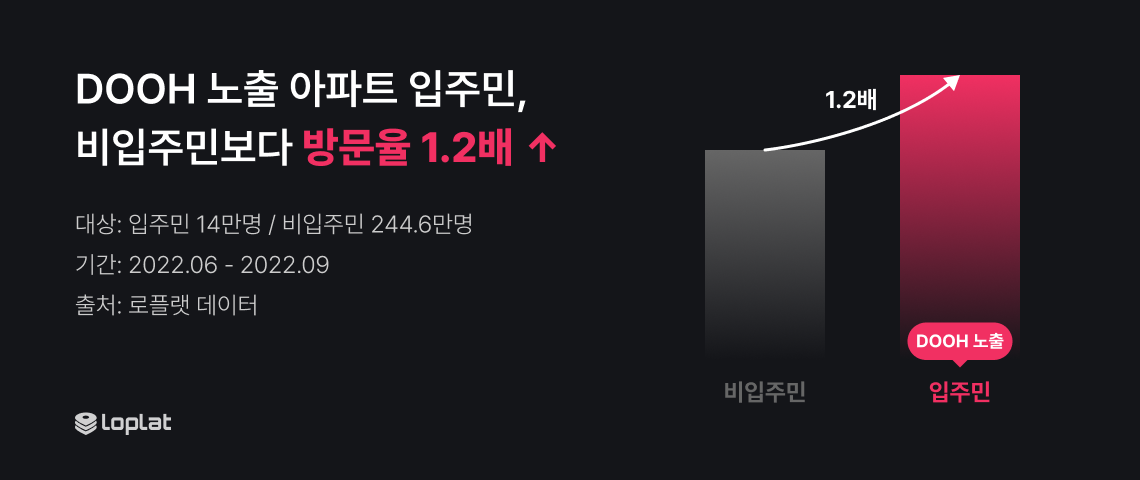 롯데마트 광고가 노출된 아파트 입주민은 비입주민보다 롯데마트 방문율이 1.2배 높았습니다.