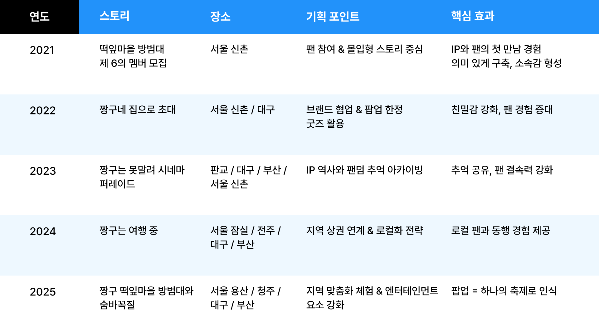 1️⃣ 매년 새로운 스토리텔링으로 팬 경험을 새롭게 유지