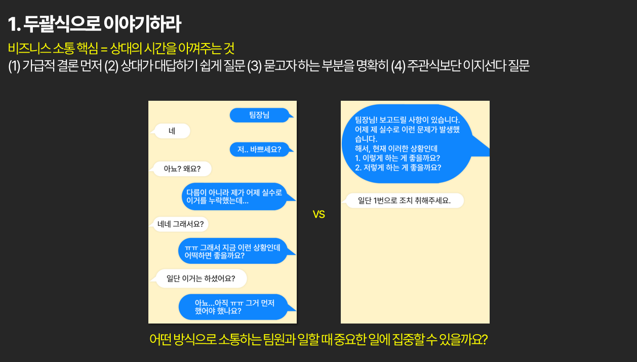회사에서 하는 소통은 친구들과 하는 소통과 달라야 합니다.