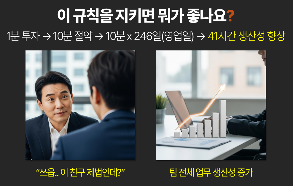 1. 소통하는 데 시간이 매우 절약됩니다. (상대방의 시간을 아껴줄 수 있습니다.)