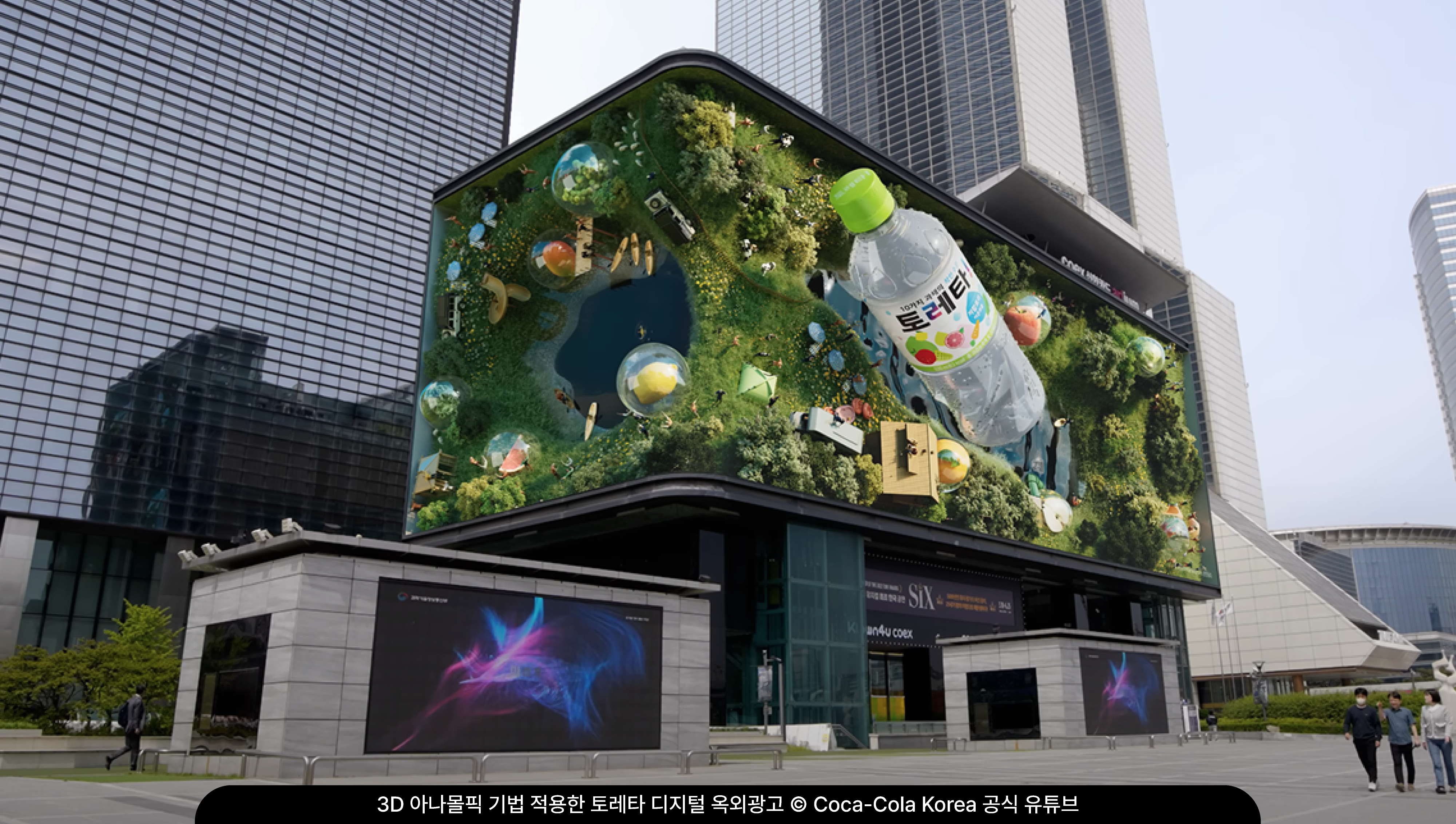 한편, 옥외광고는 화려한 영상과 참여형·체험형 요소를 도입하는 등 형식도 진화하고 있습니다. 여기에는 기술의 발전이 큰 몫을 했어요. 디지털 사이니지와 LED 스크린이 도입되면서 실시간 데이터를 반영할 수 있게 되었고 AR/빅데이터/3D 기술 등도 활용 가능해졌죠. 이에 따라 소재의 가능성이 무궁무진해졌을 뿐 아니라, 광고에 피로감이 큰 소비자에게도 재치 있게 다가갈 수 있게 되었습니다.
