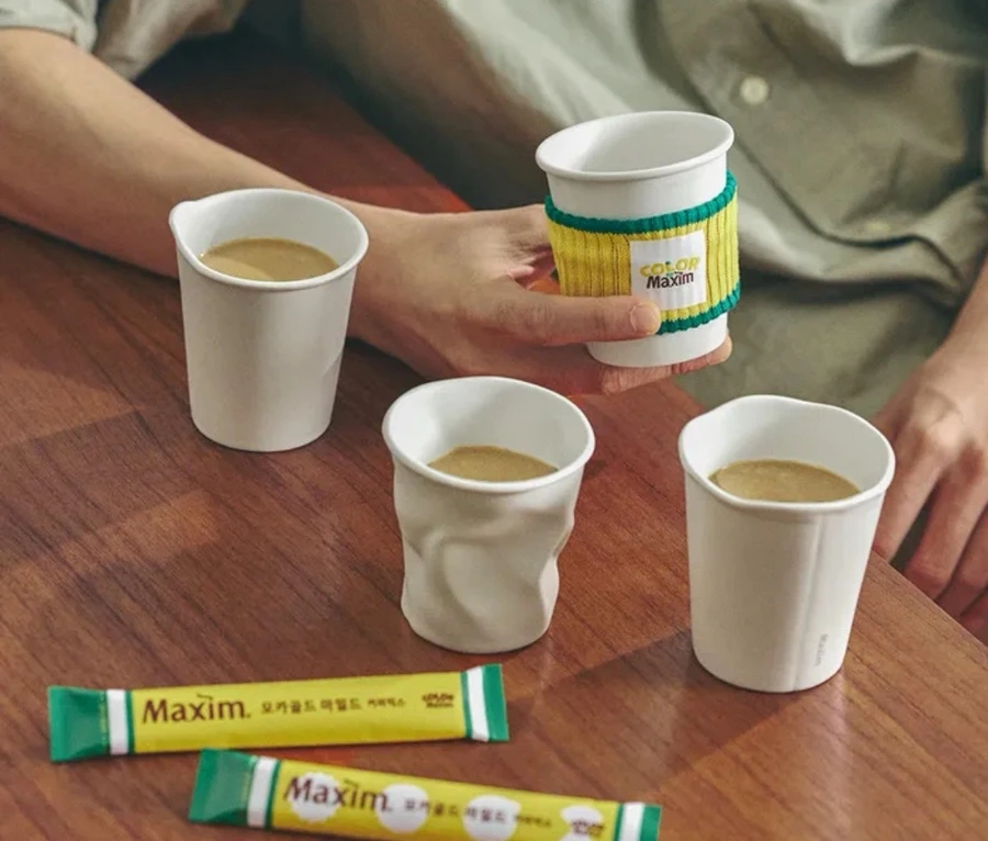 한편 탕비실 필수템인 ‘맥심 커피’는 종이컵 굿즈를 선보이며 바이럴에 성공했습니다. 이 굿즈는 종이컵의 형태와 사이즈를 도자기 재질로 만들어 다회용으로 쓸 수 있는 것이 특징입니다.