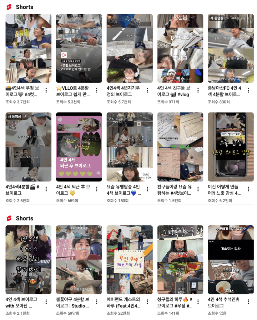 출처 = 유튜브 ‘4인4색 브이로그’ 검색 결과