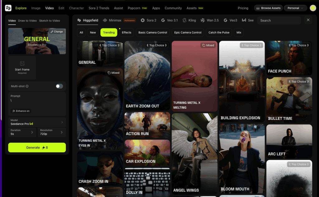 Higgsfield (힉스필드): 다양한 AI 모델 ‘찍먹’ 가능