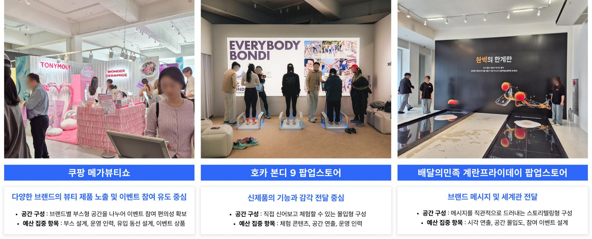 같은 공간, 같은 기간이라도 브랜드의 목적에 따라 공간 구성, 콘텐츠 설계, 운영 방식이 완전히 달라지고 결과적으로 예산도 크게 달라집니다.