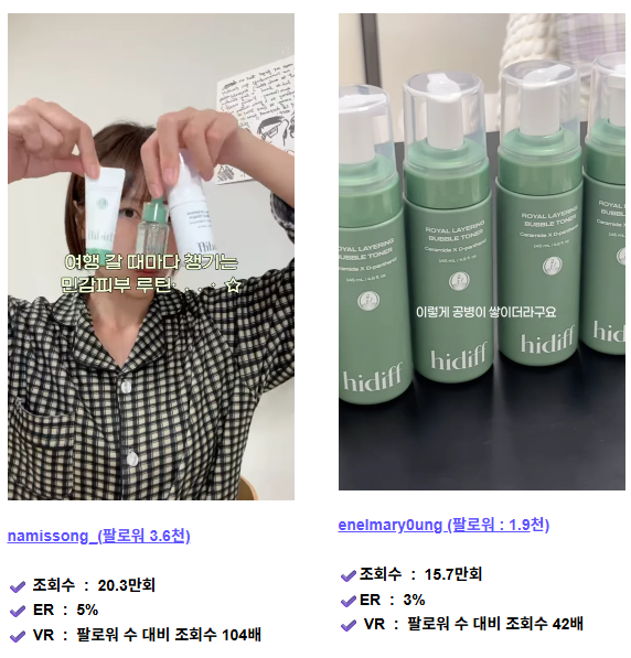 특히, 인플루언서 선정 과정에서 피처링 솔루션을 함께 접목해서, 예상 VR이 높은 인플루언서를 데이터 기반으로 선별하여 실제로 좋은 성과를 낼 수 있었습니다.