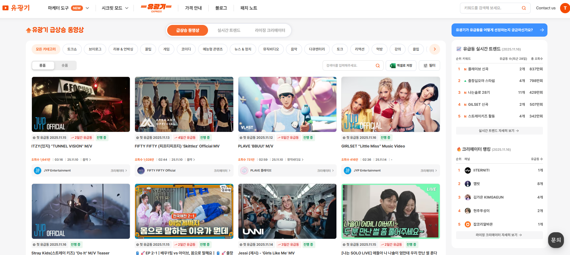 유광기의 ‘유급동’은 유튜브에서 빠르게 떠오르는 주제와 크리에이터를 가장 먼저 포착하는 데이터 기반 급상승 지표입니다.