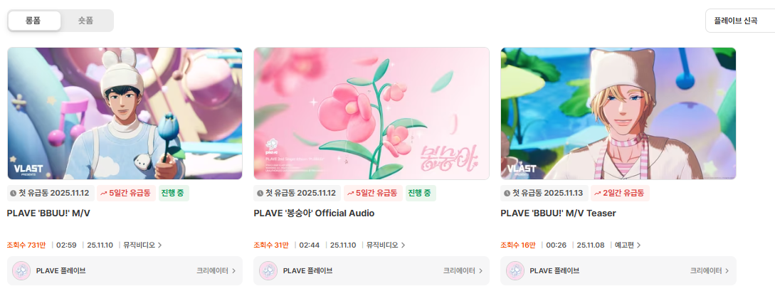 실제 인물 기반 팬덤보다 스토리텔링이 중요한 유튜브에서 세계관·서사 기반 팬덤의 체류 시간과 반복 소비가 훨씬 강력하게 반응을 만든 사례라고 볼 수 있죠.
