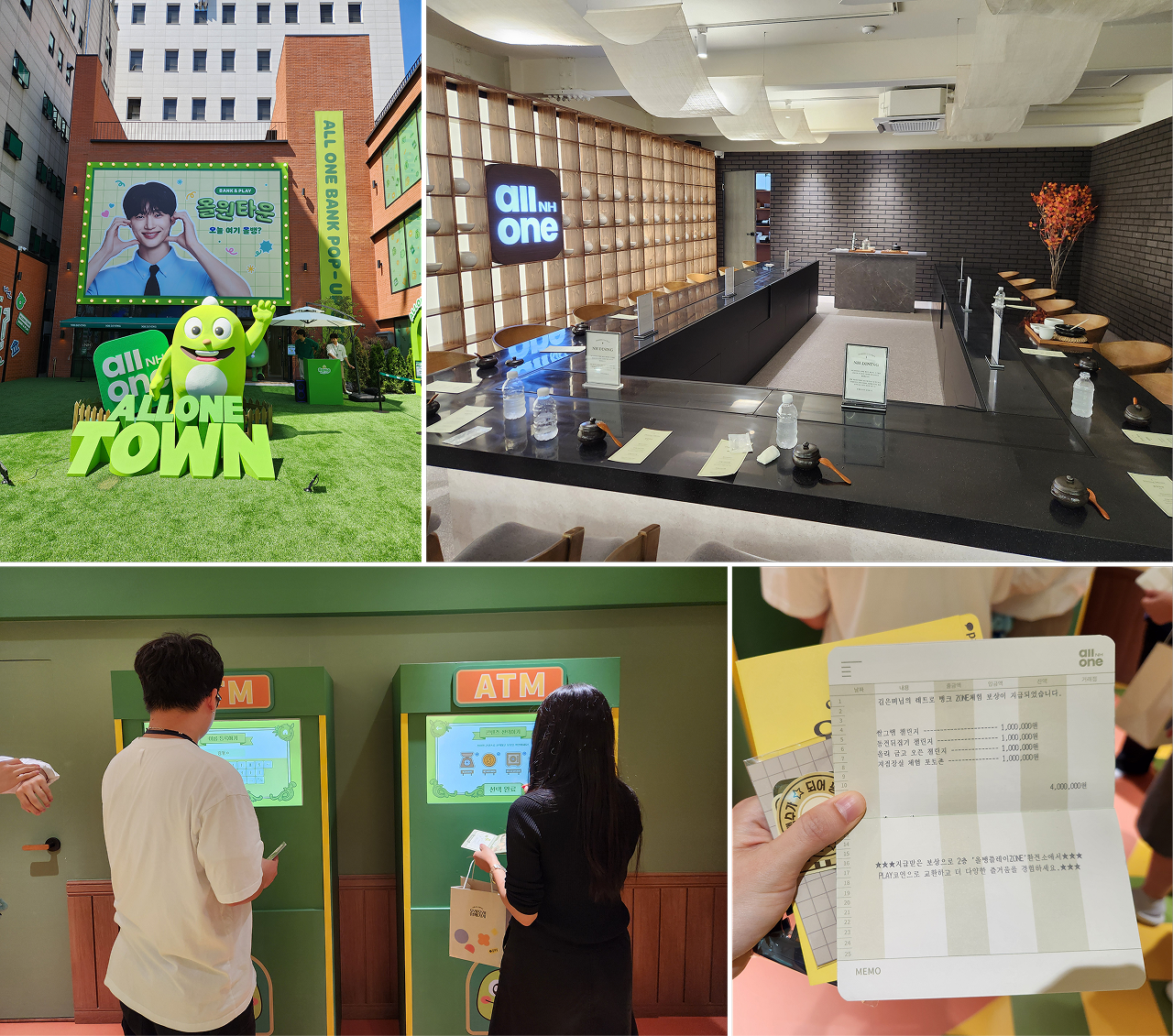 좋은 예로 최근 성수에서 진행된 올원뱅크 팝업스토어를 들 수 있어요. 3주 동안 약 3만 7천 명이 방문했는데요. 올원뱅크 팝업스토어가 이렇게 많은 사람들을 모을 수 있었던 가장 큰 이유는 단순 전시가 아니라 다채로운 체험 프로그램을 중심으로 운영됐기 때문이에요. 레트로 콘셉트로 구성된 1층에서 가상 통장을 발급받고, 각종 미션을 수행해 코인을 모으면 2층에서 굿즈로 교환할 수 있었어요. 여기서 핵심은 체험→보상 구조 자체보다 모든 게임과 미션이 농협이라는 브랜드 서사와 연결되어 있었다는 점이에요. 방문자가 놀고 즐기면서도 ‘이 브랜드가 어떤 가치를 말하고 싶은지’를 자연스럽게 이해하게 만든 구조였죠. 또한 올원뱅크는 NH 다이닝 프로그램을 통해 이원일 셰프와 협업한 한식 다이닝 체험을 선착순 80명에게 무료로 제공했어요. 이 이벤트는 현장 몰입도를 높였을 뿐 아니라, SNS에 올리고 싶어지는 강력한 후킹 포인트가 되어 바이럴을 폭발적으로 이끌었어요.