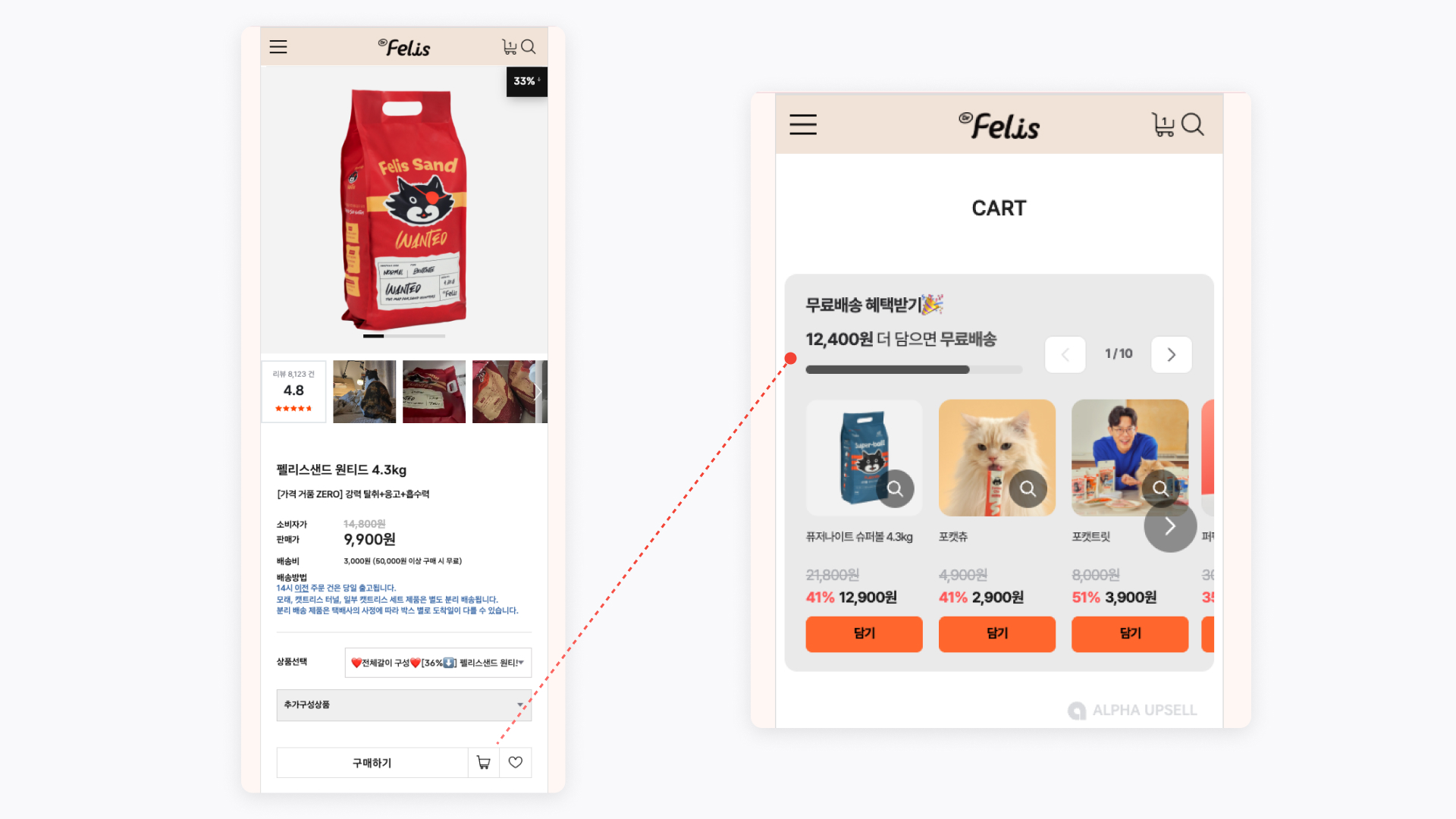 고객은 구매 과정에서 여러 번의 심리적 장벽을 마주합니다. 장바구니에 담고도 망설이거나 결제 직전에 이탈하는 경우가 대표적이죠. 이때 추천 솔루션은 이러한 이탈 구간을 매출 기회로 전환시킬 수 있습니다. 예를 들어 “12,400원 더 담으면 무료배송”과 같은 메시지는 장바구니 단계에서 더 높은 금액의 매출을 유도할 수 있는 전략으로 작동합니다. 이처럼 상품 추천은 단순한 기술이 아니라 구매 여정을 설계하는 심리적 인터페이스입니다.