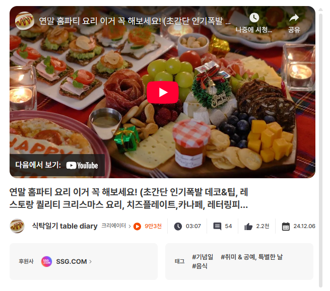 썸네일 한장으로 압도한다, 홈파티·비주얼 중심 크리스마스 콘텐츠