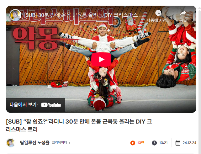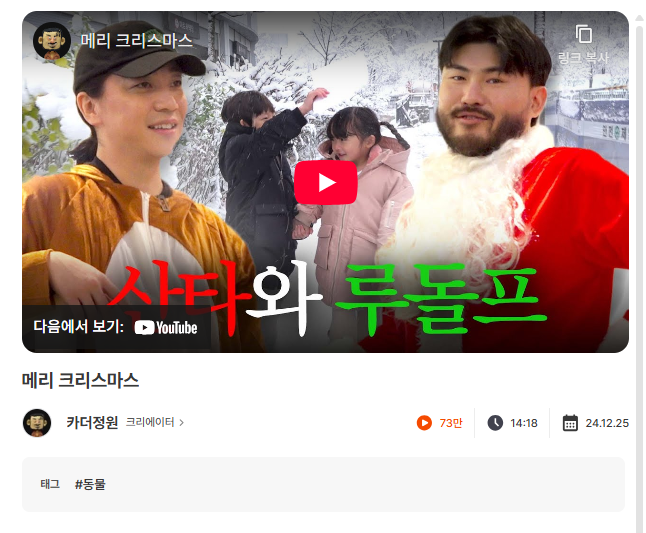 크리스마스 콘텐츠라고 다 같은 분위기를 내는 건 아니죠! 오히려 각 크리에이터가 가지고 있는 고유한 캐릭터와 포맷이 시즌성을 어떻게 흡수하느냐에 따라 완전히 다르게 표현됩니다.