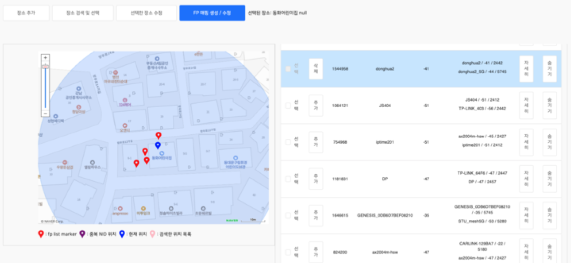하지만 실제 현장에서는 한 장소 주변에 수십~수백 개의 와이파이 이름이 동시에 잡히기 때문에,
