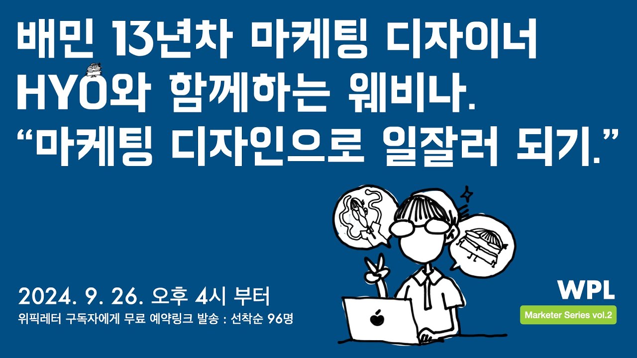 위픽레터 웨비나(WPL Webinar)는 구체적인 니즈를 가진 현직 마케터들이 모여 실시간으로 소통하는 무료 라이브 방송 및 지식 아카이브입니다.