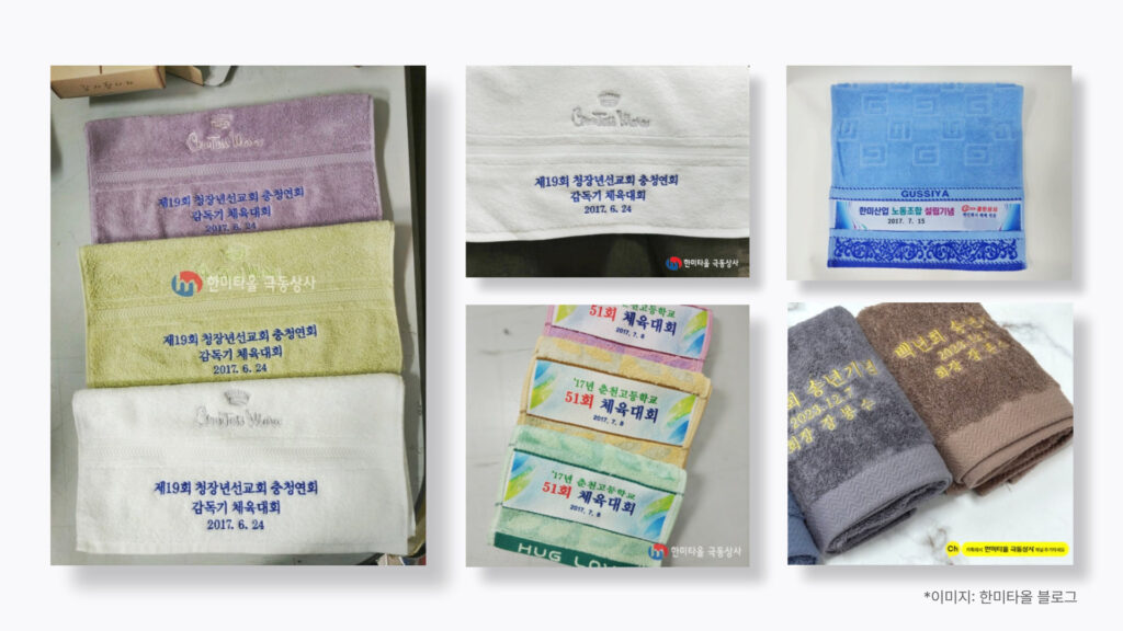 여러분은 집에서 어떤 수건을 사용하시나요? 2010년 대까지만 해도 아래 사진과 같이 행사 답례품으로 받아온 수건이 많았는데요.