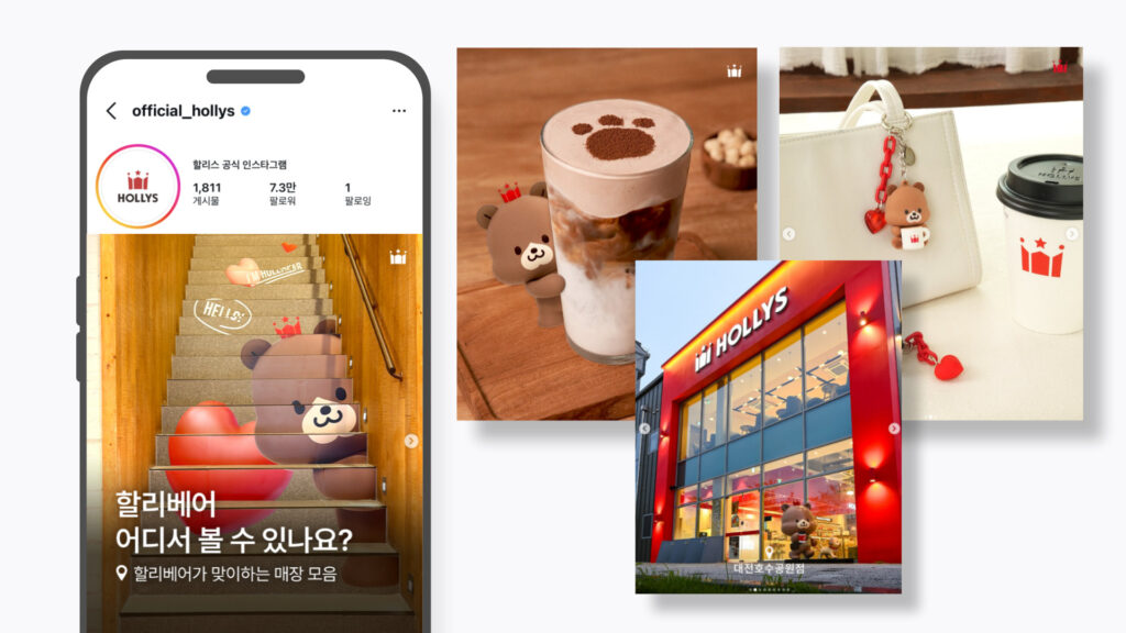 할리스는 단순히 커피를 파는 공간을 넘어, 브랜드 마스코트 할리베어를 중심으로 매장 공간을 확장했습니다. 포토존과 테마형 인테리어, 시즌별 음료와 한정 굿즈를 통해 소비자가 매장에 머물며 즐거운 체험을 할 수 있게 했죠. 방문객들은 자연스럽게 사진을 찍고 SNS에 공유하며 브랜드 경험을 나눴어요. 이러한 전략은 단순한 상품 판매를 넘어 기분과 경험 중심의 소비, 즉 필코노미 트렌드를 적극 반영한 효과적인 마케팅 사례입니다.