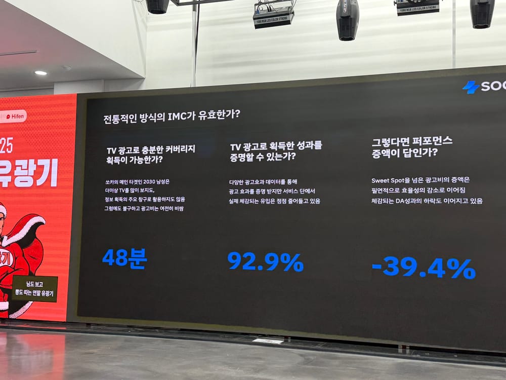 쏘카의 주 타겟인 20대 남성의 하루 평균 TV 시청 시간을 조사했을 때 48분이라는 시간이 나온 만큼 TV를 N이고 이미 브랜드 인지도는 90% 이상인 상황에서 쏘카에게 필요한 건 인지 확대가 아니라 행동을 만드는 접점이었습니다.