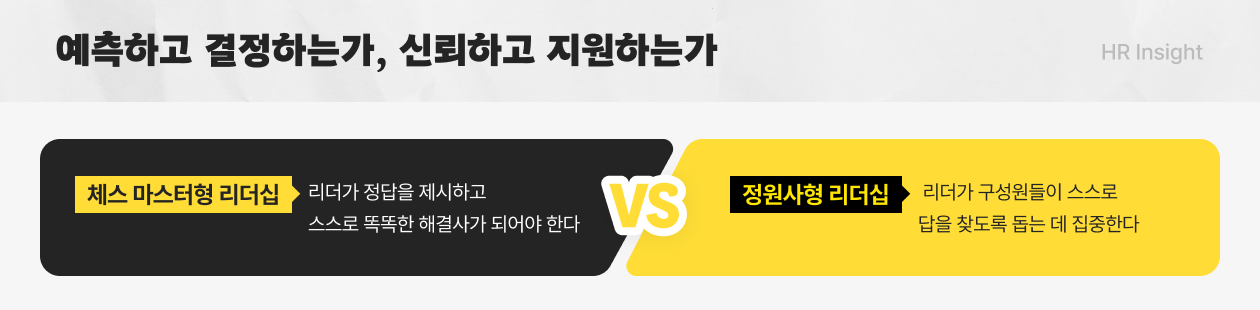 리더십 유형에 따라 ‘체스 마스터형 리더십’과 ‘정원사형 리더십’으로 나눌 수 있습니다.