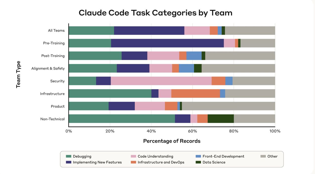 특히 의미 있는 변화는 전체 작업의 약 27%가 AI가 없었다면 시도되지 않았을 일이라는 점입니다. 데이터 대시보드 구축이나 코드 리팩토링처럼 중요하지만 미뤄지던 작업들이 실제 실행되기 시작했습니다.