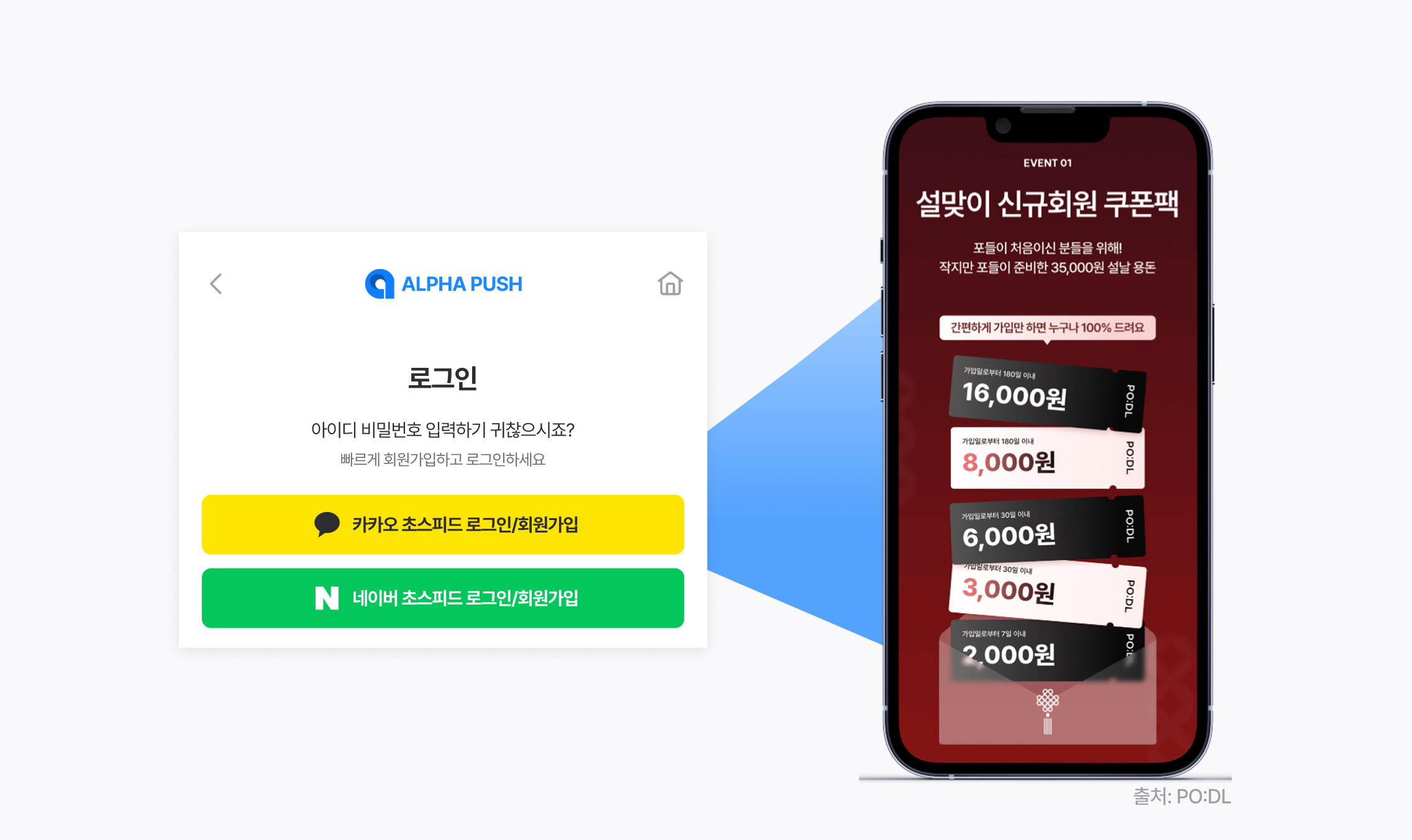 고객 세그먼트별 맞춤 공략으로 사로잡으세요. 만약 휴면 고객이라면, ‘설맞이 세뱃돈 왔어요’와 같이 리워드 보상을 통해 재방문을 유도할 수 있어요.