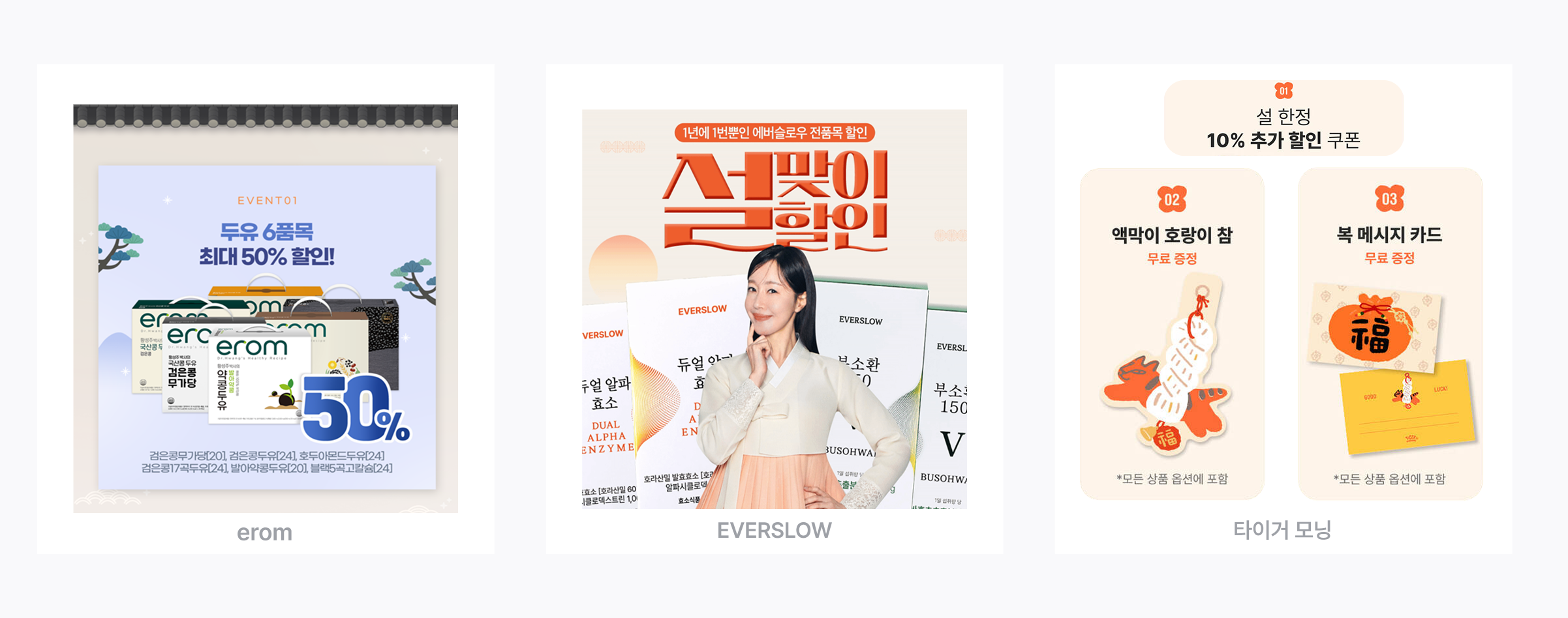 새해 첫 명절 특성상 설날에는 연초에 세워둔 예산 계획 속에서 깐깐한 지출 계획으로 소비가 이루어지는데요. 이런저런 사정으로 설 명절에는 다른 때보다 더 많은 비교로 제품을 선택할 거예요. 그렇기에 고객이 한 번에 더 많이 담을수록 혜택이 커지는 ‘다구성 할인’이나 ‘N+1’과 같은 사은 프로모션은 객단가를 높이는 필승 전략이 된답니다. 마음은 넉넉하게, 지갑은 가볍게 소비자를 이끌어오는 프로모션을 기획해야 합니다.