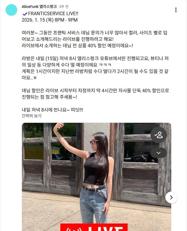 정제된 영상보다 라이브가 더 강력한 이유도 여기에 있습니다. 댓글을 통해 사이즈나 착용감에 대한 질문이 실시간으로 오가고 그에 대한 반응이 편집 없이 그대로 노출됩니다. 이 과정 자체가 브랜드에 대한 신뢰를 만들어냅니다.