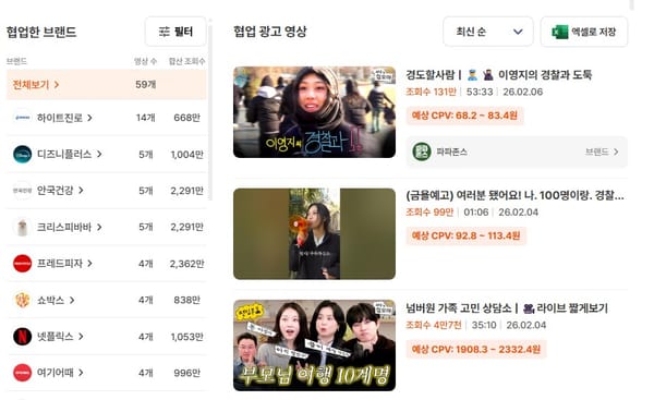조회수를 단기간에 끌어올리는 구조는 아니지만 오히려 브랜드들의 혜택 코드 등으로 시청자들의 호응이 있고 그로 인해 꾸준한 시청자 체류와 반복 노출을 통해 브랜드와 채널 모두에게 안정적인 성과를 만들어냅니다.