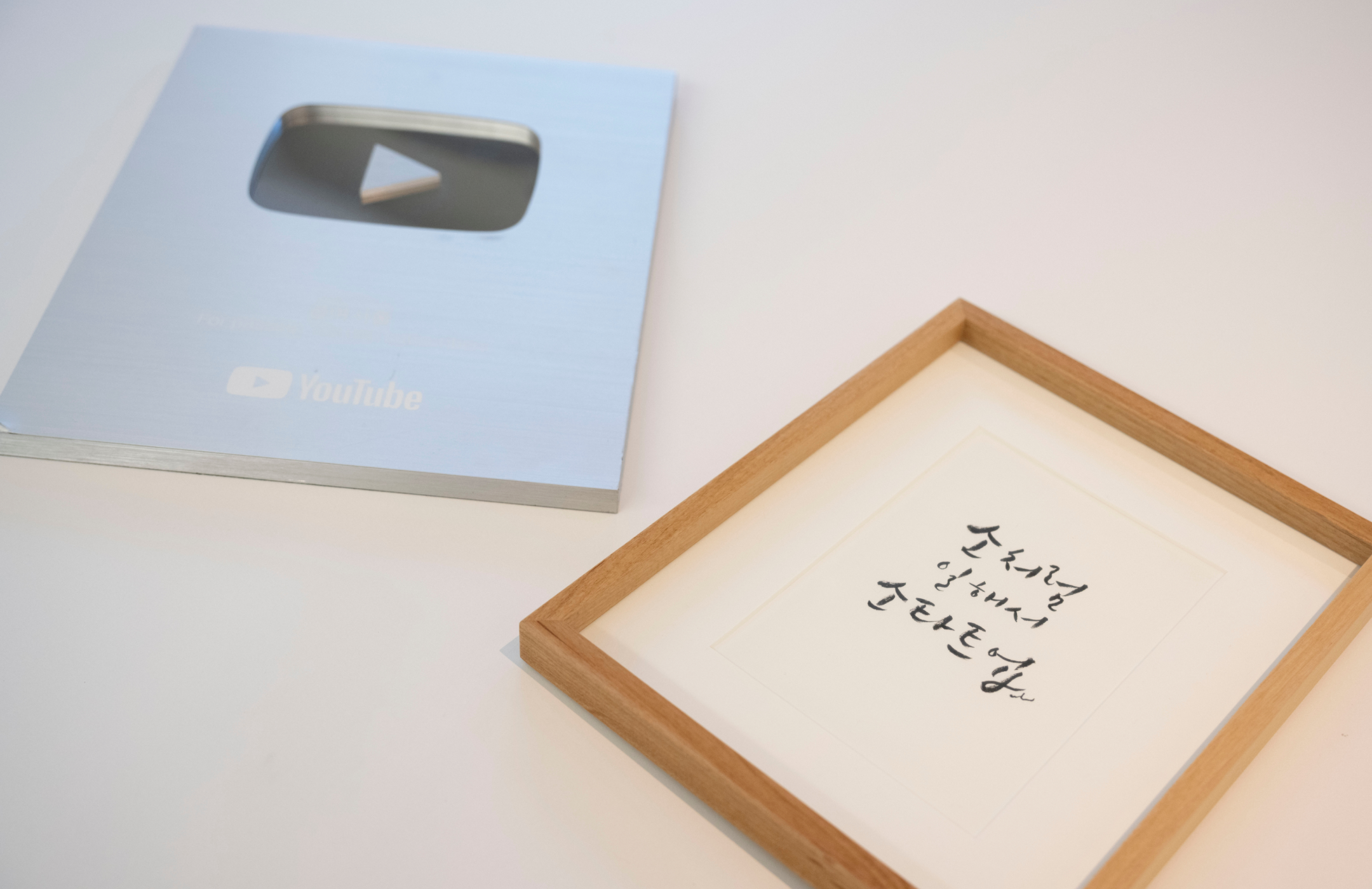 공여사들 유튜브 채널 실버 버튼과 워크숍 기념 액자 ⓒ 아임웹