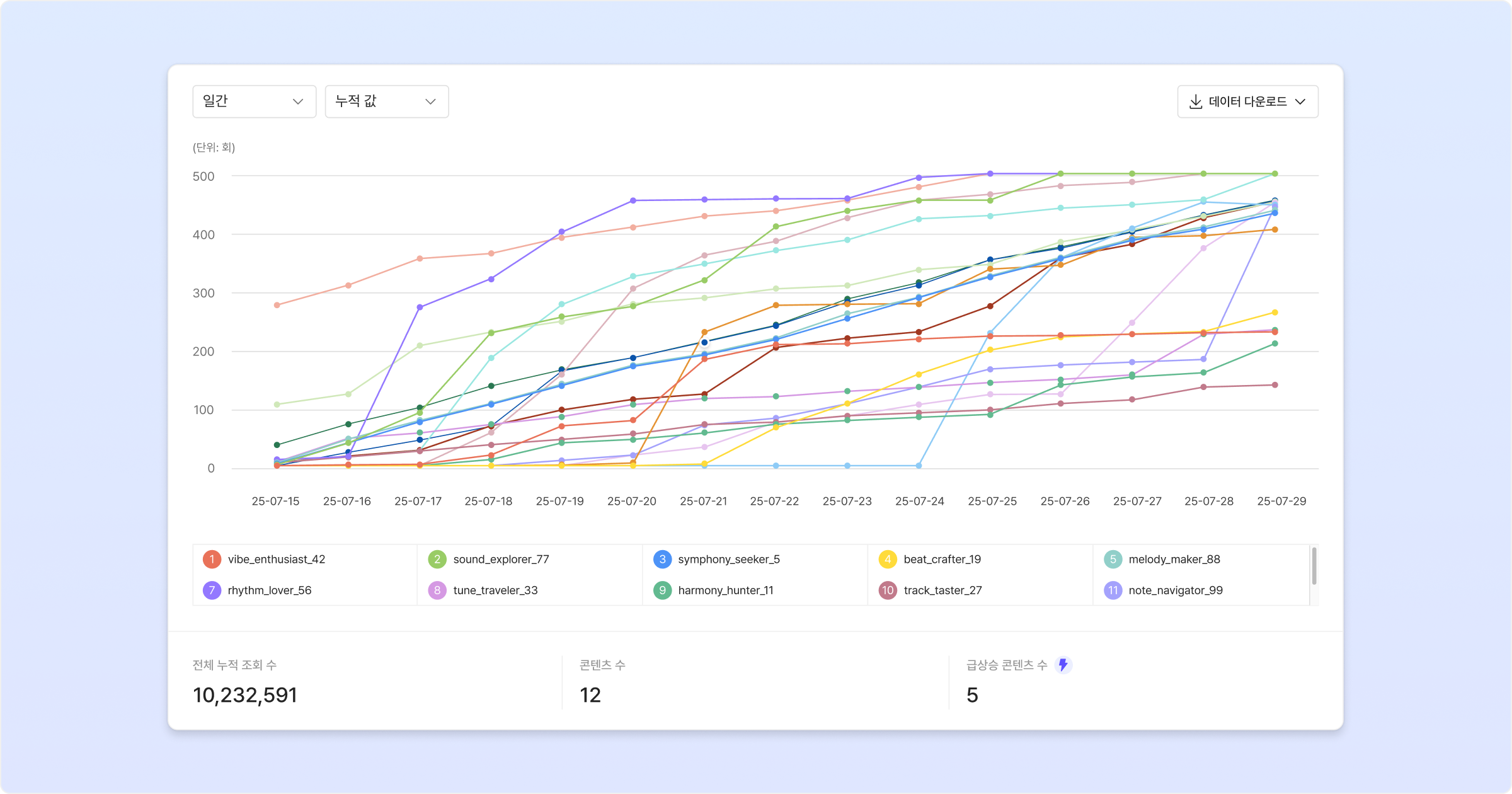 언제 조회수가 터졌는지, 언제 반응이 둔화됐는지,
